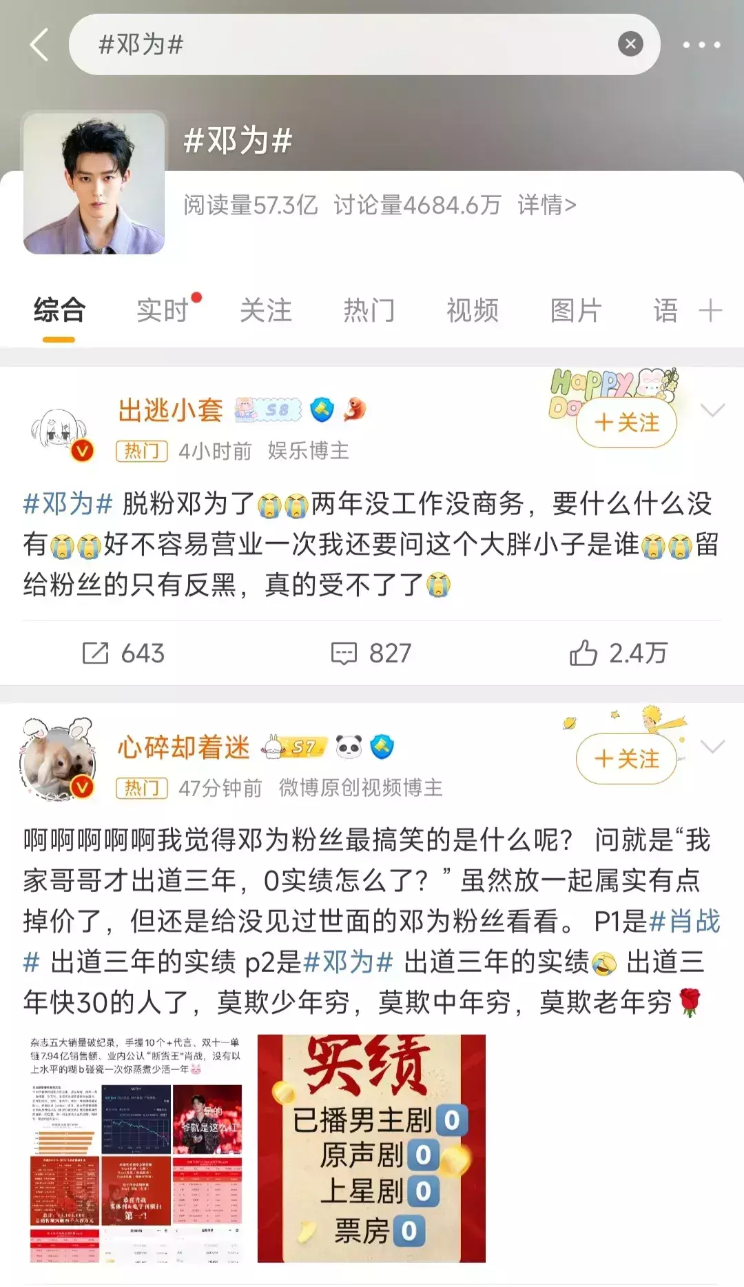 只可说肖战不愧是顶流,粉丝稠密,邓为粉涓滴无还手之力,当前在我方广场全是我方的丑图和黑料。